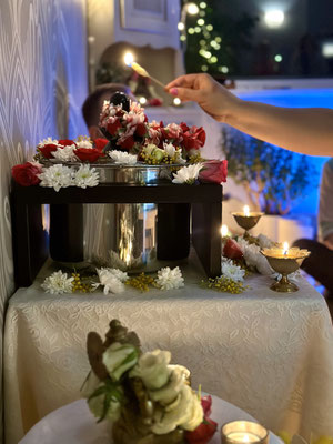 * Ziedojuma summā ietilpst: telpu nodrošināšana, tiešsaistes translācija, visu rituālam nepieciešamo atribūtu iegāde (Ghī, piens, medus, ziedi, augļi, vīraks u.c.), ziedojums bramanim.